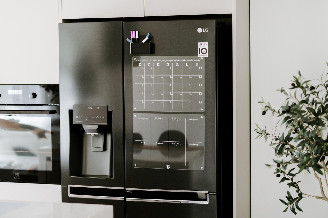 Akrüülist magnetilised tahvlid sulanduvad ideaalselt sinu kodu interjööriga olles samal ajal sulle suureks abikäeks oma aja ja tegemiste planeerimisel. Kuna akrüülist tahvlid on läbipaistvad valge trükiga, sobivad need eelkõige musta värvi ja halli värvi külmikutele.