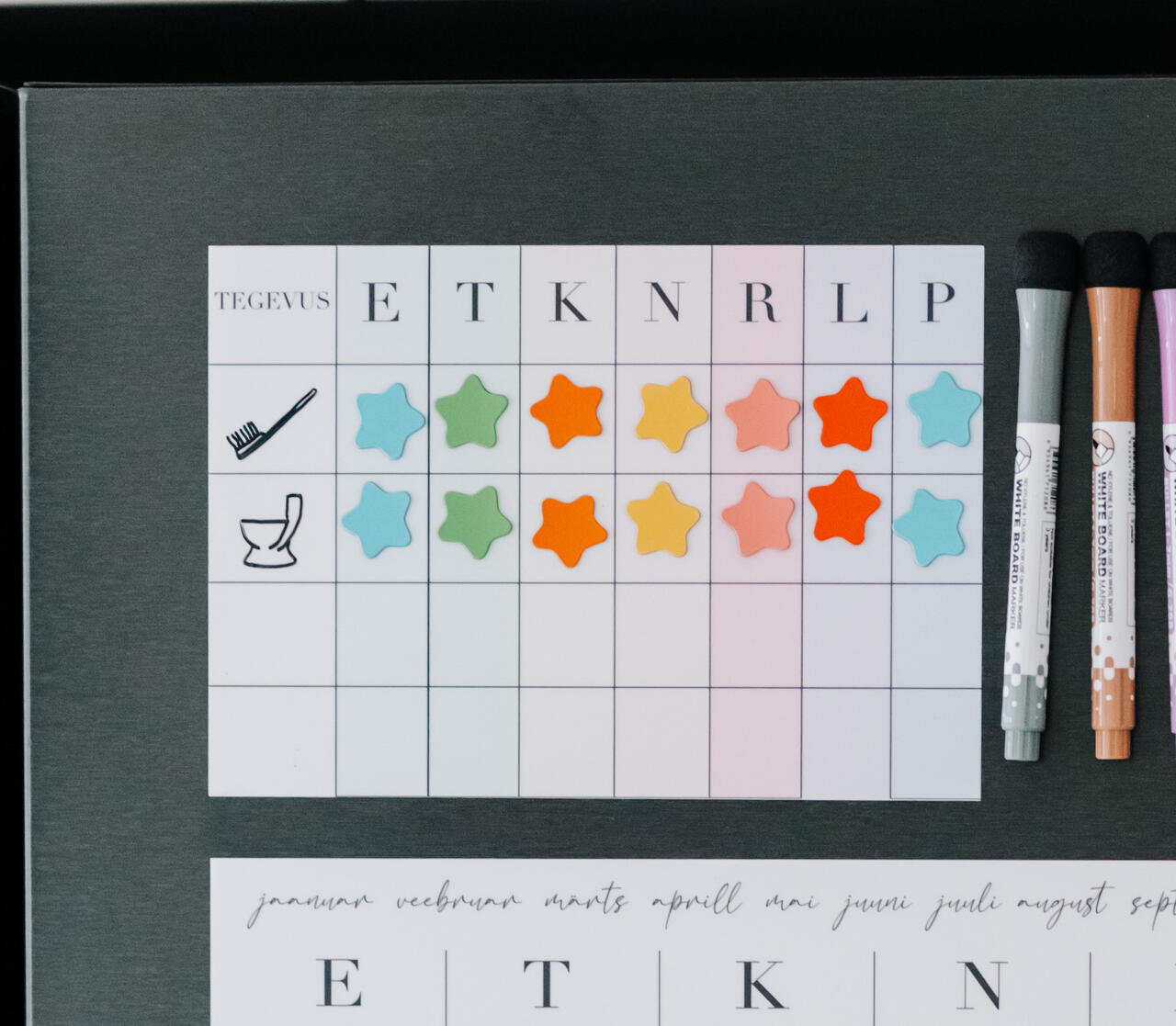 Kas tunnete, et on võimatu saada oma laps hambaid pesema, potil käima, tuba koristama või hoopis mingeid muid tegevusi tegema? Käitumistahvel motiveerib lapsi ja aitab teil need probleemid lahendada. Käitumistahvlisse mahub kirjutama või joonistama 4 tegevust, mida saab vajadusel maha kustutada ja muuta. Tahvliga tulevad kaasa eri värvides magnetilised tähekesed, mida saab laps ise tahvlile panna, kui on tegevuse või ülesande täitnud. See tekitab nendes põnevust ja ootusärevust, et juba uus täheke tahvlile panna. Kui iga nädalapäeva taga on nädala lõpuks täheke, saab laps preemia. See, mis on preemiaks, leppige lapsega ise enne kokku. Statistika on näidanud, et käitumistahvlit kasutades tekib lapsel harjumus ning paari kuu või isegi nädala pärast pole lapsel enam tahvlit tarvis, vaid teeb juba ise need tegevused ära. Kui teha laste jaoks asjad mänguliseks, teevad nad kõike kaasa hea meelega.