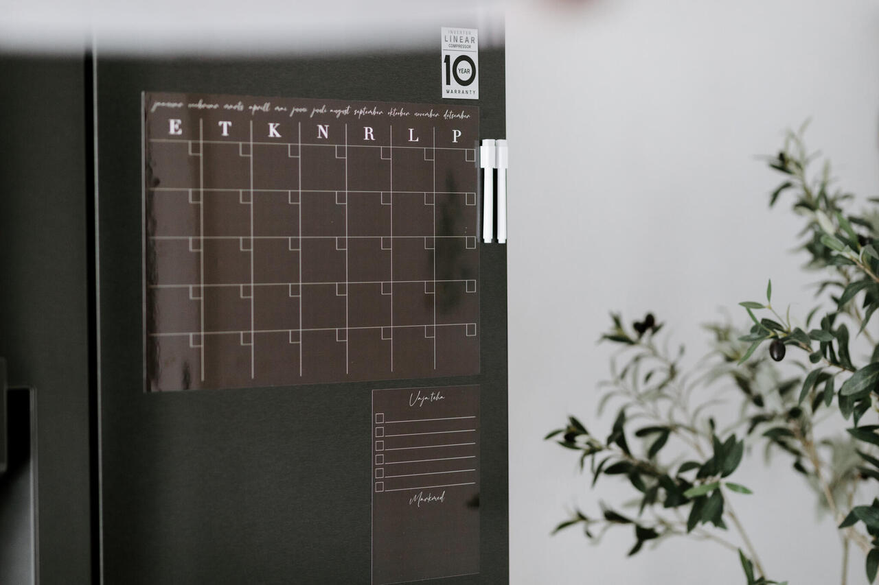 Uues mustas kuues külmiku kuu planeerija ja märkmete + vaja teha listi tahvel sulab märkamatult kokku teie tumeda külmikuga ning ei jäta kedagi külmaks.